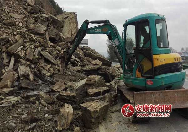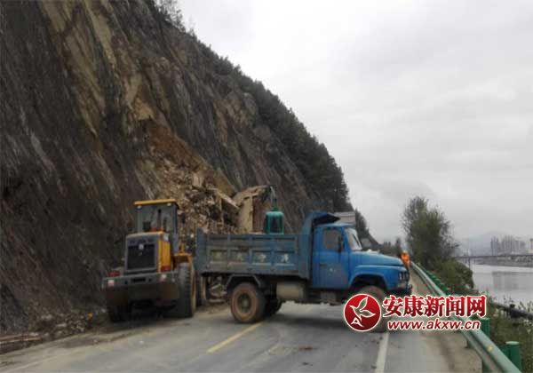 安康新聞網(wǎng)訊 (通訊員 葛松 張歡) 10月29日上午,瀛湖干道K1+050處,一臺(tái)挖掘機(jī)一臺(tái)裝載機(jī)正在緊張清除道路塌方。