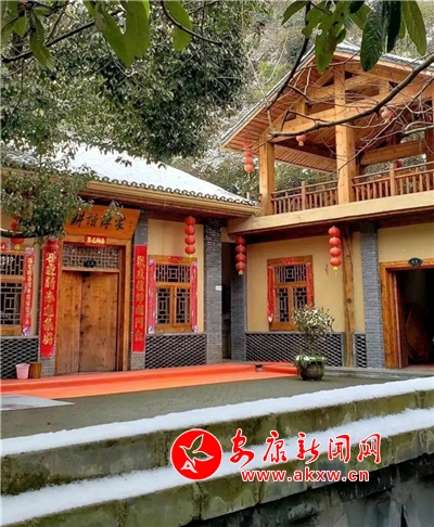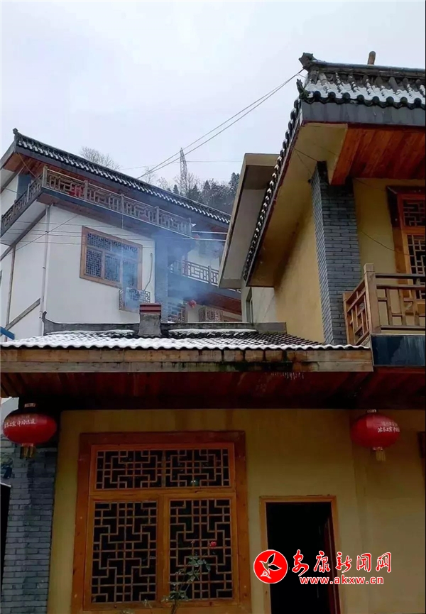 紅屋檐、紅格窗、紅木門、紅楹聯(lián)、紅地毯,還有那懸掛在屋頂上隨風舞動的紅燈籠,在瑟瑟寒風和茫茫白雪中,才顯其妖嬈展姿。這里,是紅與白色澤、熱與冷色溫的匯聚。紅,是一枝梅,是數(shù)盞燈,是萬家火,是山里人熱騰騰好日子的主色調……
