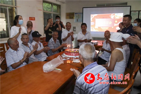 活動(dòng)現(xiàn)場(chǎng),他們?yōu)槔先藗兯腿ヅD獭⒌V泉水、牙膏等生活用品,宣講防疫小知識(shí),并為11位老人集體慶生,為他們精心準(zhǔn)備了生日蛋糕和禮品。老人們圍桌而坐,一起唱生日歌,現(xiàn)場(chǎng)其樂(lè)融融。