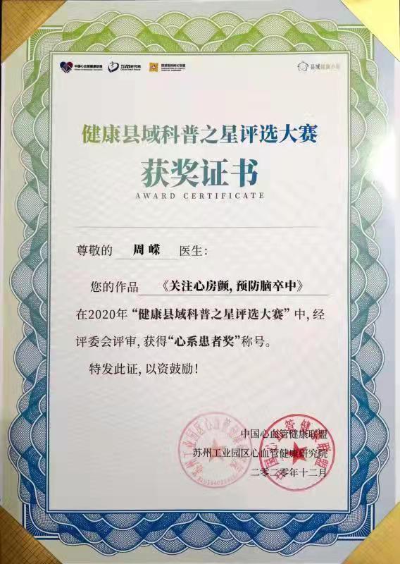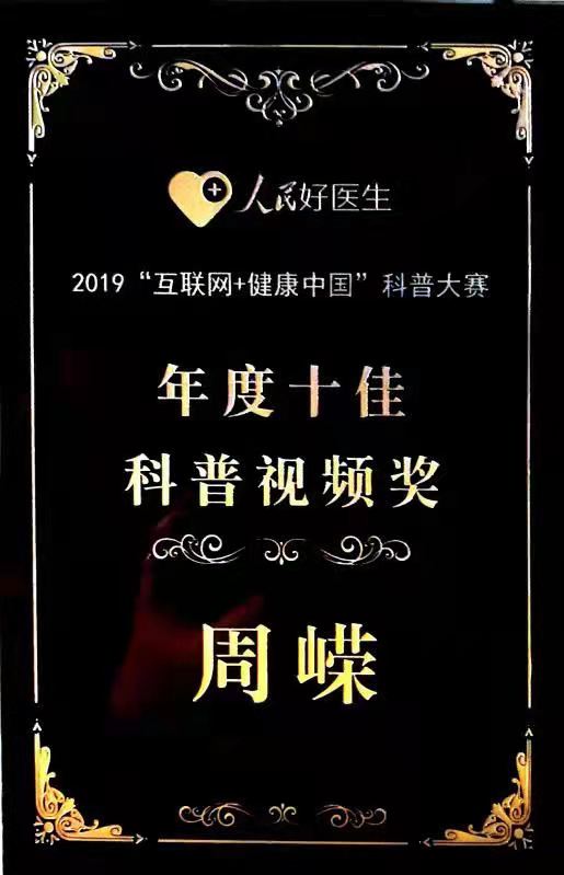 2020年 獲第二屆“互聯(lián)網(wǎng)+健康中國”科普大賽“科普達人獎”