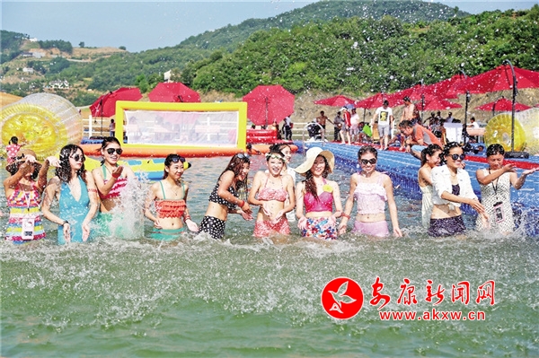 瀛湖的初夏,萬(wàn)千變化。清晨,山和水還在夢(mèng)中酣睡,一輪紅日從東面湖的盡頭沐浴而出,爬上山頭,霞光染紅了湖水,染紅了天空,湖面顯得更加清幽。傍晚,落日熔金,給群山鍍了一層金邊。此時(shí),群鳥(niǎo)歸隱,群魚(yú)入眠。江風(fēng)攪動(dòng)湖水,湖面波光瀲滟,明麗動(dòng)人。晚歸的漁民搖著一葉扁舟在寂靜的湖面上飄蕩,成為畫(huà)中最美的風(fēng)景。習(xí)習(xí)涼風(fēng)也吹散了白日的暑熱,舒適愜意,是休閑避暑的好去處。若遇雨天,天地間扯起絲絲銀線(xiàn),水天一色,如煙如霧,籠罩在瀛湖上空。那若有若無(wú)輕煙一樣的雨霧輕盈地飄蕩在湖面上、群山間,翠屏山莊上的亭臺(tái)水榭、湖心碧螺島上的螺峰塔,全都沐浴在水蒙蒙的輕紗中,如夢(mèng)似幻?!拔魅角鞍橈w,桃花流水鱖魚(yú)肥。青箬笠,綠蓑衣,斜風(fēng)細(xì)雨不須歸。”此時(shí),湖里的魚(yú)兒成群結(jié)隊(duì)地游出水面透氣,正是釣魚(yú)的最佳時(shí)機(jī),湖邊不少垂釣愛(ài)好者正興致勃勃地冒雨釣魚(yú),完全不顧雨已打濕了衣服。湖中,一葉葉漁舟和游船在雨中漫游,幽幽絲竹之聲從游船中飄出,像游走在煙雨迷蒙的江南水鄉(xiāng)。