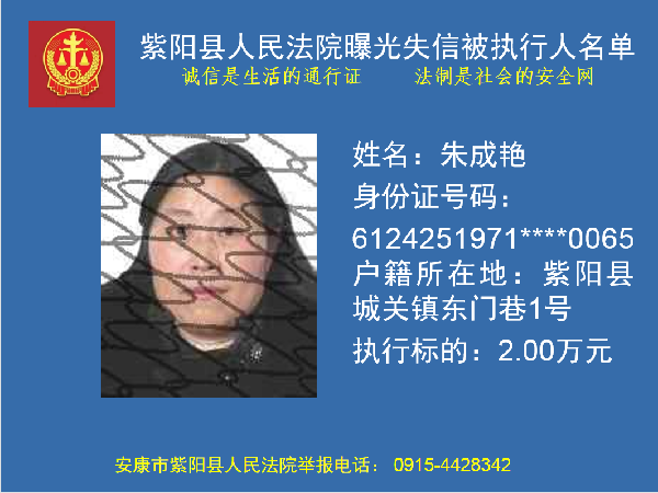 曝光失信 | 紫陽(yáng)縣人民法院:關(guān)于敦促朱成艷履行法定義務(wù)的公告