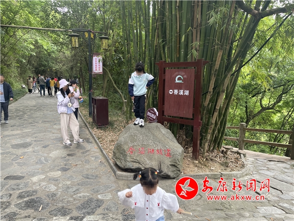“樓閣云中建,竹木藏山巔。”“五一”期間,風(fēng)景優(yōu)美、距離城區(qū)較近的香溪洞風(fēng)景區(qū)也迎來(lái)了“游客潮”。在眾多自覺(jué)遵守文明出行規(guī)則的游客中,一孩童隨意踩踏在景觀(guān)石頭上,和溫馨提示牌上的“愛(ài)護(hù)環(huán)境,文明出行”形成鮮明對(duì)比。