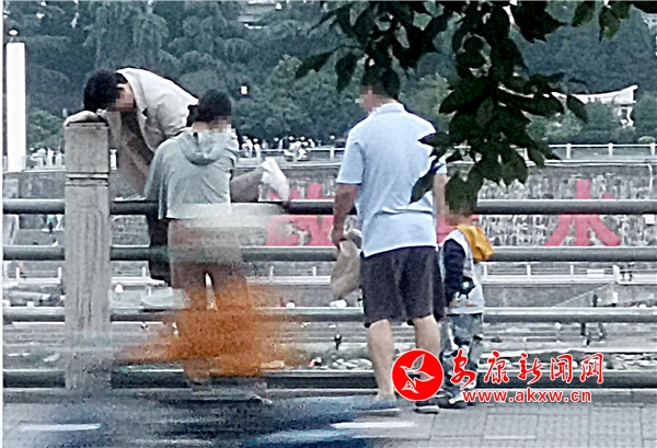 無(wú)獨(dú)有偶,在近日的江北濱江公園,游覽結(jié)束的游人為走捷徑翻越欄桿。