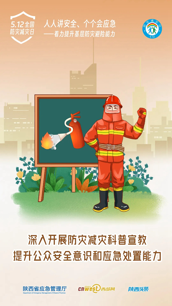 今年5月12日是第16個(gè)全國防災(zāi)減災(zāi)日,5月11日至17日為防災(zāi)減災(zāi)宣傳周。今年全國防災(zāi)減災(zāi)日主題為“人人講安全、個(gè)個(gè)會(huì)應(yīng)急——著力提升基層防災(zāi)避險(xiǎn)能力”