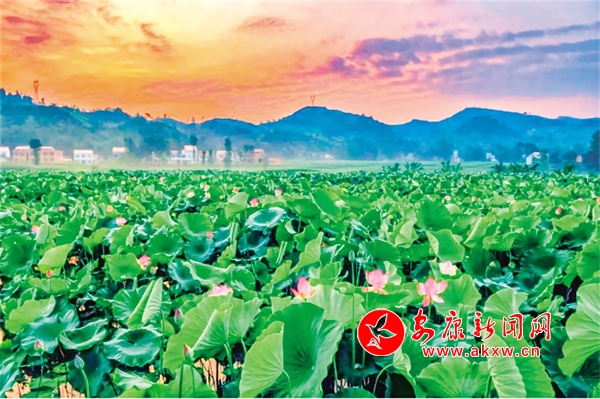 “嗚——”一聲汽笛長(zhǎng)鳴,我們?nèi)齻€(gè)不約而同地扭頭望去,一輛“清風(fēng)號(hào)”紅色小火車載著滿滿一車游人在荷塘間穿梭,車上的人一臉幸福自豪,盡享漫游的快樂(lè)。江南的荷塘里是采蓮的畫(huà)船,這里是奔馳的火車,倒也有趣。我的腦海里閃現(xiàn)一個(gè)念頭:既然有陜南,何必下江南??