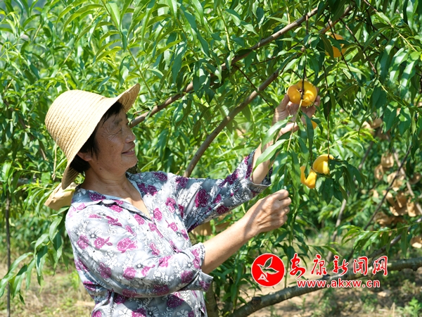 紫陽(yáng)縣宏錦生態(tài)農(nóng)業(yè)發(fā)展有限公司總經(jīng)理張?zhí)姀?018年開始投資600余萬(wàn)元,在該縣雙安鎮(zhèn)白馬村種植黃桃500余畝,經(jīng)過(guò)多年的細(xì)心經(jīng)營(yíng),黃桃產(chǎn)量逐年增長(zhǎng)。今年黃桃喜獲豐收,產(chǎn)量達(dá)15萬(wàn)斤,創(chuàng)收近200萬(wàn)元,帶動(dòng)周邊農(nóng)戶30余戶脫貧增收。時(shí)下,正是黃桃采收季節(jié),每天上門購(gòu)買黃桃的客戶逾百人,其產(chǎn)品還從網(wǎng)上遠(yuǎn)銷新疆、廣東、江蘇、西安等13個(gè)省市。(文/王安平 周禮學(xué) 圖/吳友能)?