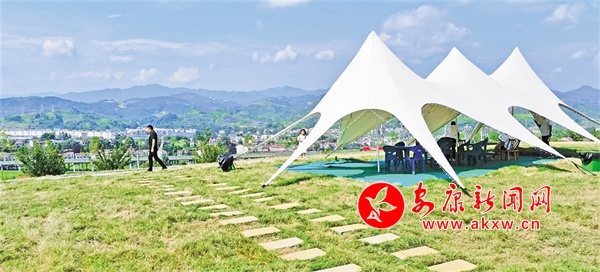當(dāng)我賞罷一馬平川的恒口貢米基地,邁步田園后面的緩坡,走過以“稻夢時光”統(tǒng)一冠名的彩虹路、孝義文化長廊、研學(xué)基地、民宿群落,來到土坡頂臺上的這塊綠地,目光所及,仍屬“稻夢”系列:碧綠的草坪、雪白的帳篷、深紅的房子、鮮艷的花卉,組成了視野開闊、環(huán)境幽靜的“稻夢時光露營基地”。