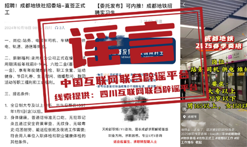 謠言:成都地鐵招聘“提前預(yù)定名額”?濟(jì)南地鐵校園招聘有“真題”?