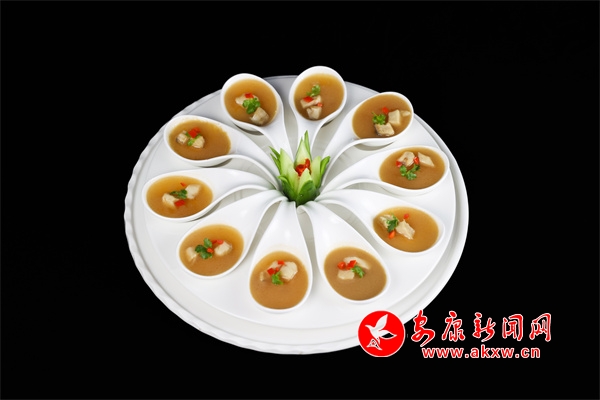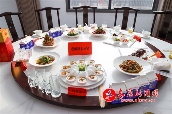 “紫陽(yáng)洄水魚宴”由8個(gè)涼菜,即:香酥小魚、干煸牛肉、茶香魚皮、鱘魚凍、撈汁七彩花生、酸辣四拼、雙色變蛋、涼拌折耳根;8個(gè)熱菜即:茶香鱘魚、紫蘇魚片、熗鍋鯉魚、釀羊肚菌、辣子雞、臘味三拼、魚頭燉黑豆腐、當(dāng)歸白蘿卜燉羊肉;一個(gè)湯菜:魚丸湯;3道小吃即:魚肉餃子、茶香餅、紫菜魚餅;主食:金銀米飯、酸菜面和飯后水果拼盤組成。據(jù)了解該宴席是繼漢濱區(qū)流水魚宴、石泉縣江魚魚宴之后,全市公開推向市場(chǎng)的第三個(gè)以魚為主料的專業(yè)魚宴。?