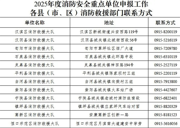 安康市消防救援支隊關(guān)于申報2025年度消防安全重點單位的公告