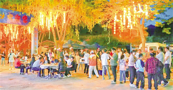舞臺旁的燒烤美食區(qū),秘制烤肉與本地山珍食材散發(fā)著誘人香氣,游客們圍坐一起,吃著燒烤、聽著音樂、吹著涼風,盡情享受假日的愜意。演出間隙的套圈、有獎問答、音樂接龍、民宿推介等互動環(huán)節(jié),更是讓游客熱情高漲,現場歡聲笑語不斷。