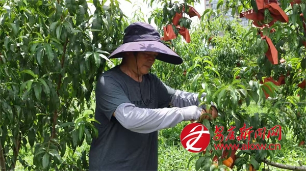 同樣迎來收獲的還有城關鎮(zhèn)的黃桃,在城關鎮(zhèn)龍嶺村的黃桃種植基地,連片的桃樹郁郁蔥蔥,金燦燦的黃桃壓彎了枝條,空氣中彌漫著誘人的桃香?;刎撠熑藙⒑暾χ烧?,臉上洋溢著燦爛的笑容,他一邊采摘一邊介紹道:“我們這個桃園有金鳳黃桃、黃金黃桃、秋彤桃和冬桃四個品種,一共有9畝多,從6月中旬到10月左右,陸續(xù)都有成熟的桃子?!?/p>