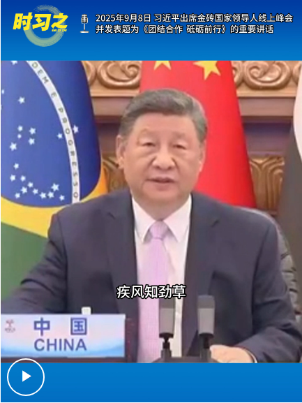 2025年9月8日晚,國家主席習近平出席金磚國家領導人線上峰會,并發(fā)表題為《團結合作 砥礪前行》的重要講話。