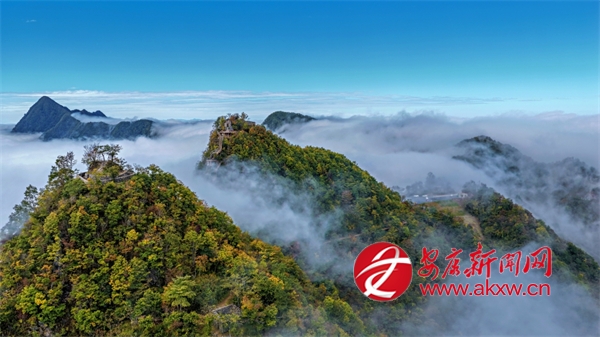 10月7日,云霧如輕紗漫過嵐皋縣全勝寨的峰巒,美不勝收。(皮勇維 攝)