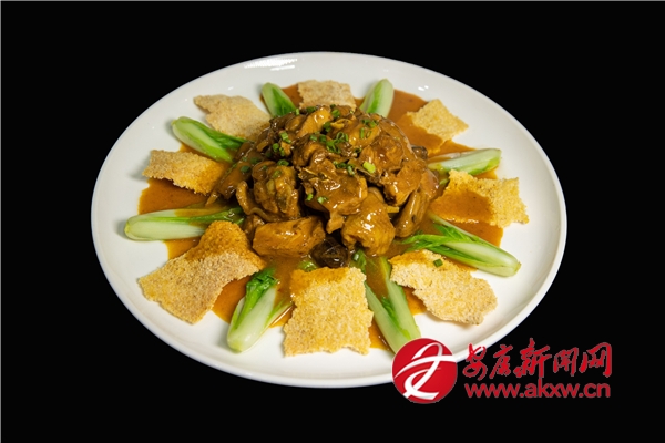 2022年,王鵬注冊成立了寧陜縣關(guān)口菜根香餐飲文化有限公司,這不僅是為了傳承陜菜傳統(tǒng)文化的精髓,更是將中國古典文化中的“匠心”與“堅守”融入烹飪之道。在其精湛的廚藝之下,每一道菜都承載著文化與創(chuàng)意。天麻燒乳鴿,鴿肉鮮嫩,天麻咸鮮,是一道難得的養(yǎng)生菜品?!绊懱冒謇蹼u”以玉米鍋巴、板栗土雞為主料烹制而成,鍋巴在口腔里發(fā)出咔咔脆的聲音,就有了形象的“響堂”,每一口都是味蕾的享受,于2016年入選“陜西名菜”。