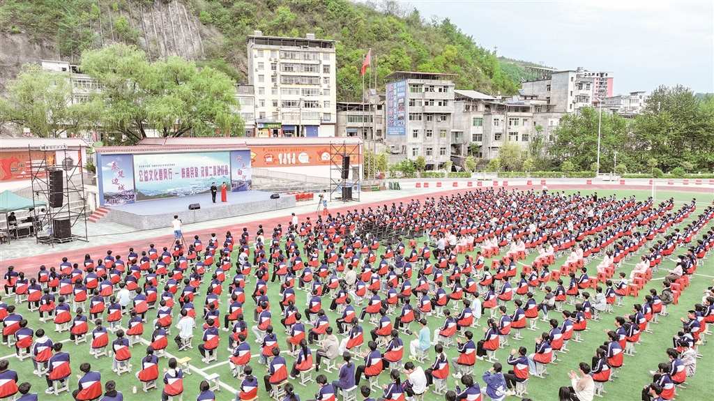 展演現(xiàn)場(chǎng),紫陽小學(xué)學(xué)生帶來的民歌聯(lián)唱《童聲唱紫陽》贏得滿堂喝彩。孩子們用清亮的嗓音演繹《開山歌》《三月三上茶山》《螃蟹歌》等經(jīng)典陜南民歌,悠揚(yáng)婉轉(zhuǎn)的旋律中透著童真童趣,將地域文化的獨(dú)特韻味展現(xiàn)得淋漓盡致。“這首歌是奶奶教我唱的,現(xiàn)在我在學(xué)校社團(tuán)里學(xué)會(huì)了更多唱法?!敝鞒獙W(xué)生鄧可唯說,通過美育課程,她不僅學(xué)會(huì)了唱歌,還了解了民歌背后的民俗故事。