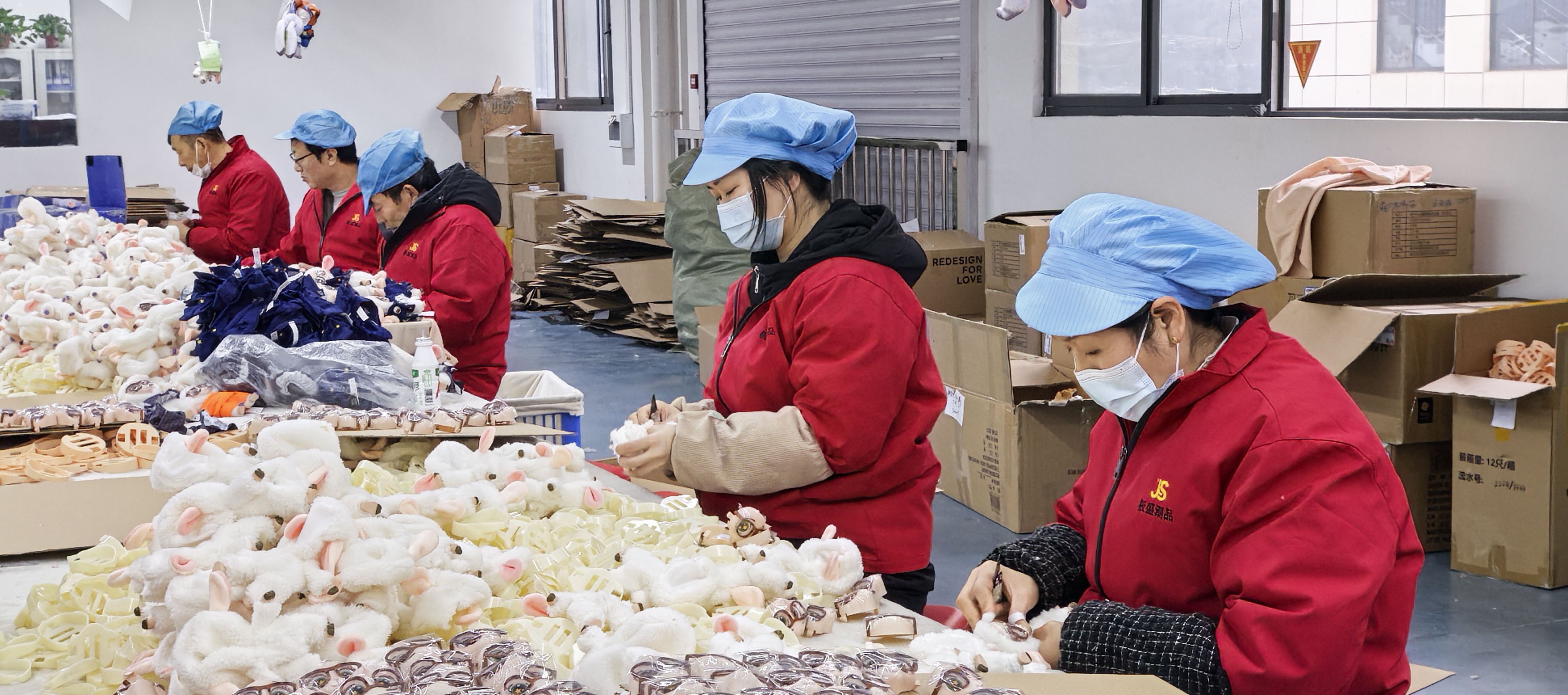 工人們正在縫制毛絨玩具。