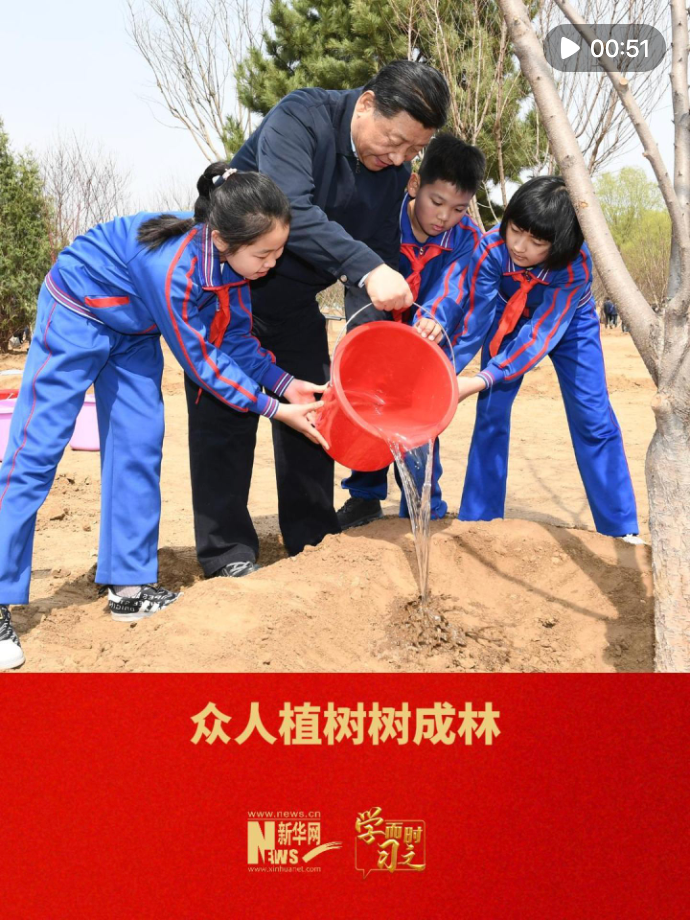 黨的十八大以來,習(xí)近平總書記每年都會身體力行,參加首都義務(wù)植樹活動。他強(qiáng)調(diào),讓我們從自己、從現(xiàn)在做起,把接力棒一棒一棒傳下去。