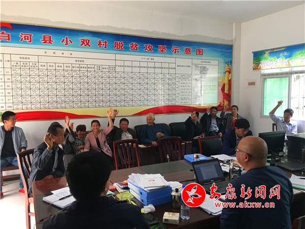 白河冷水小雙村召開(kāi)貧困戶民主評(píng)議,動(dòng)態(tài)調(diào)整會(huì)議。