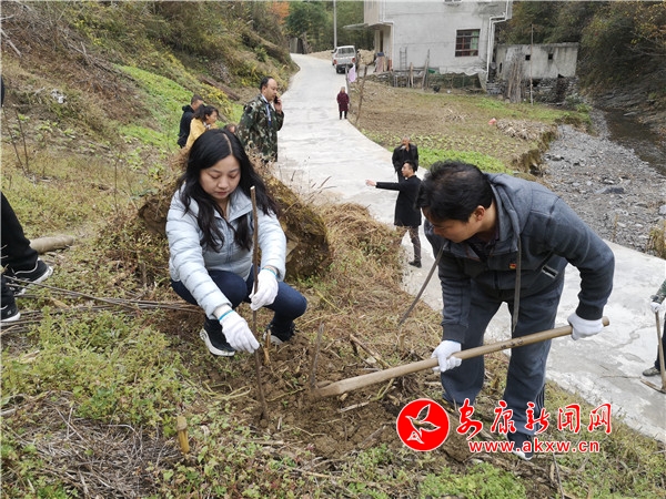 這些栽樹的人,是剛剛從安康城區(qū)趕來的市審計(jì)局的黨員干部。當(dāng)日,該局專門來到花坪村,開展“初心不改、使命不怠,種下希望、成就夢(mèng)想” 第十次主題黨日活動(dòng),用自己的雙手為花坪村栽上拐棗樹苗,用實(shí)際行動(dòng)推進(jìn)“不忘初心 牢記使命”主題教育深入開展,用為民辦實(shí)事的務(wù)實(shí)做法踐行初心和使命。