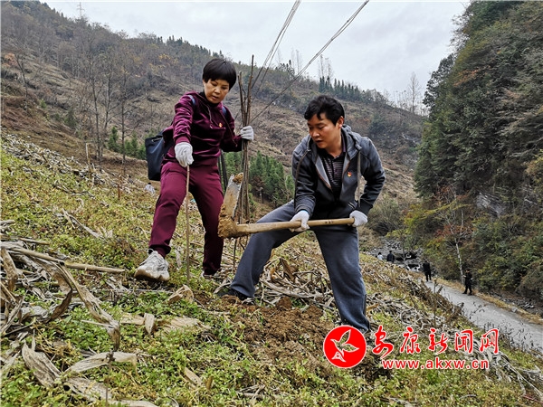 11月8日上午,鎮(zhèn)坪縣曾家鎮(zhèn)花坪村境內(nèi)的一片山地上,40多名男男女女,或手扶樹苗,或揚(yáng)起挖掘鋤頭,揮汗如雨地在坡地上栽著樹苗。他們按照技術(shù)人員講解,時(shí)而栽種,時(shí)而請(qǐng)教,力爭(zhēng)讓自己栽上的每一顆樹苗都能成活。