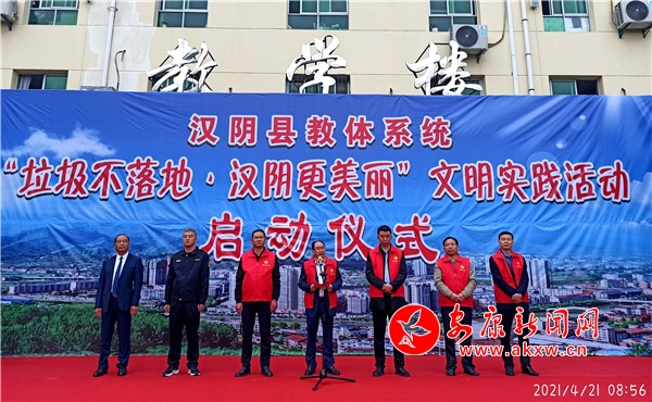 本網(wǎng)訊(通訊員 蘭本波 李永濤)為扎實推進干凈、暢通、宜居、文化“四個城市”建設,打造干凈、整潔、文明的衛(wèi)生環(huán)境,提升廣大師生文明素質(zhì),4月21日,漢陰縣教體系統(tǒng)舉行“垃圾不落地·漢陰更美麗”文明實踐活動啟動儀式。漢陰縣政府副縣長劉濟兵出席活動,漢陰縣委宣傳部、縣教體科技局、縣創(chuàng)建辦、縣城管執(zhí)法大隊、城關鎮(zhèn)分管領導和城區(qū)中小學及幼兒園主要負責人及漢陰縣初級中學全體師生2400余人參加活動。
