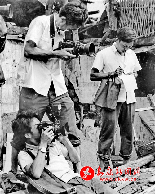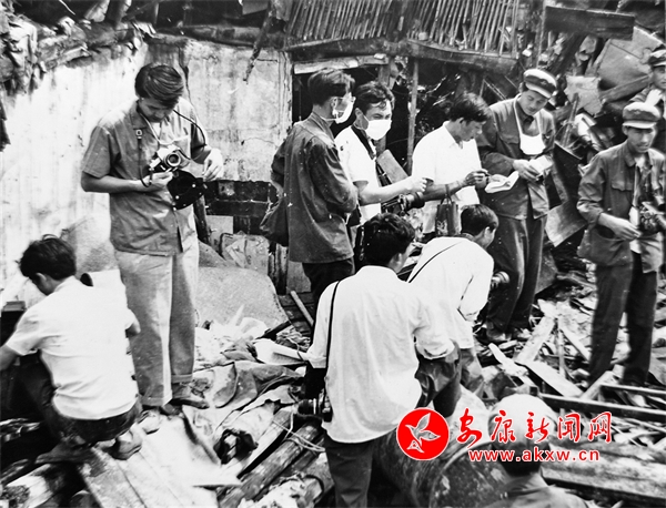 當(dāng)年我的辦公室,也就成為我們的居住地。所好的是,報社的員工和家屬沒有一個人遇難。也就是從這天開始,我每天騎車子進城采訪拍照。到了晚上我拖著疲憊的雙腿走進暗房沖洗膠卷,等膠卷徹底干了,放大版面需要的新聞圖片。這樣的活,我還沒有等到天亮就完事了。待畫版面的余鶴齡(病逝了)和趙紅橋上班了,我的圖片已經(jīng)放在他們的辦公桌上了。