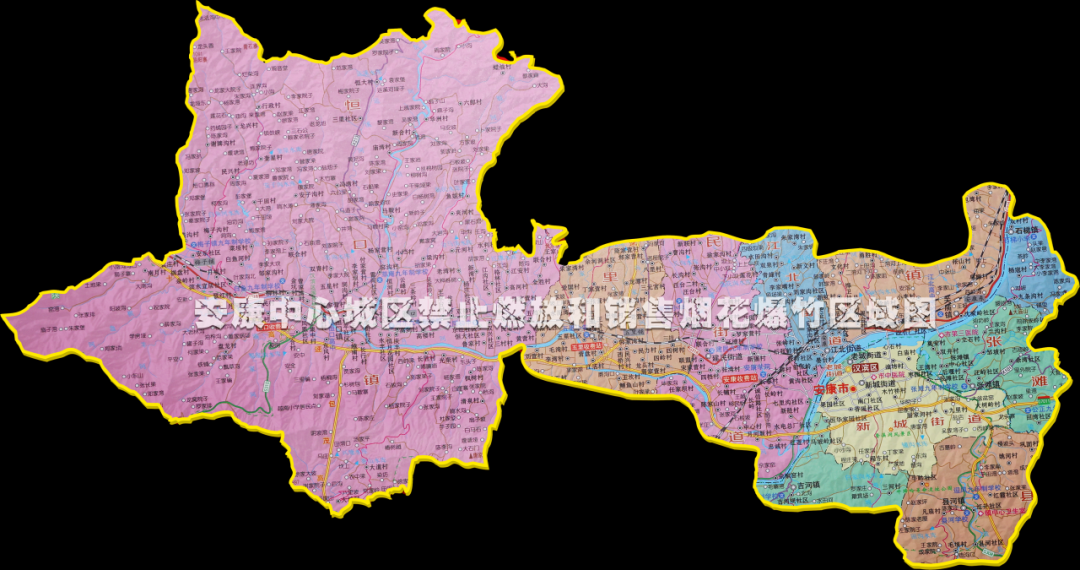 按照《安康市煙花爆竹燃放管理條例》第七條第十款規(guī)定:“市、縣(區(qū))人民政府確定和公告的其他禁止燃放煙花爆竹的區(qū)域和地點”,安康中心城市禁止燃放和銷售煙花爆竹(含電子炮)的區(qū)域為: