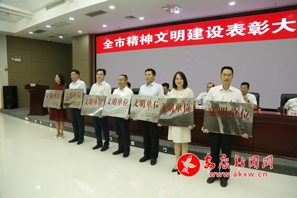 安康新聞網(wǎng)訊(記者 肖兵 潘潤生)7月19日,全市精神文明建設(shè)表彰大會召開。省人大常委會副主任、市委書記郭青出席會議并講話。市委副書記、政法委書記陳明主持會議,市委常委、宣傳部部長羅雪劍宣讀表彰決定,市委常委趙璟、高晶華、田沐臣、黃勇出席會議。