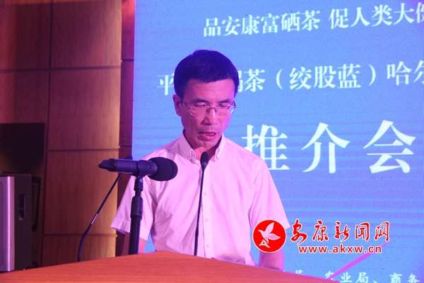 魯琦在致辭中對安康的區(qū)位、人文、生態(tài)、資源進行了介紹。他指出,安康市委、市政府把富硒茶產(chǎn)業(yè)作為為全國人民健康服務(wù)的健康產(chǎn)業(yè)、農(nóng)業(yè)特色產(chǎn)業(yè)的首位產(chǎn)業(yè)和農(nóng)民脫貧致富的當家產(chǎn)業(yè),舉全市之力做大做強安康富硒茶產(chǎn)業(yè)。此次“安康富硒茶東北三省送健康”哈爾濱招商推介活動,旨在搭建茶企貿(mào)易合作和經(jīng)貿(mào)交流平臺,讓更多的人了解安康富硒茶,了解硒對人體健康不可或缺的作用。安康誠摯歡迎各界朋友、客商來安康開發(fā)富硒資源,投資富硒產(chǎn)業(yè),齊為黑龍江人民群眾的健康和陜茶振興做出貢獻。