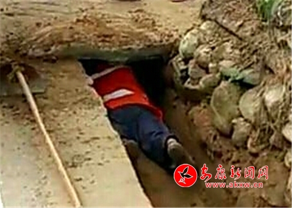 蓋板蓋住的水溝部分形成一個(gè)寬約80公分的狹小涵洞,鐵鍬只能鏟出洞口的淤泥雜物,里面的怎么辦?“我身體瘦小,我來!”——道班職工鄭清學(xué)主動(dòng)請纓,用洋鎬頭一點(diǎn)點(diǎn)將污物往外掏。遇到挖不到的角落,他便用雙手代替作業(yè),每清理完一部分,他就匍匐前進(jìn)一點(diǎn),整個(gè)身子緊緊貼在溝底,全然不顧臉上、身上滿是厚厚的淤泥。