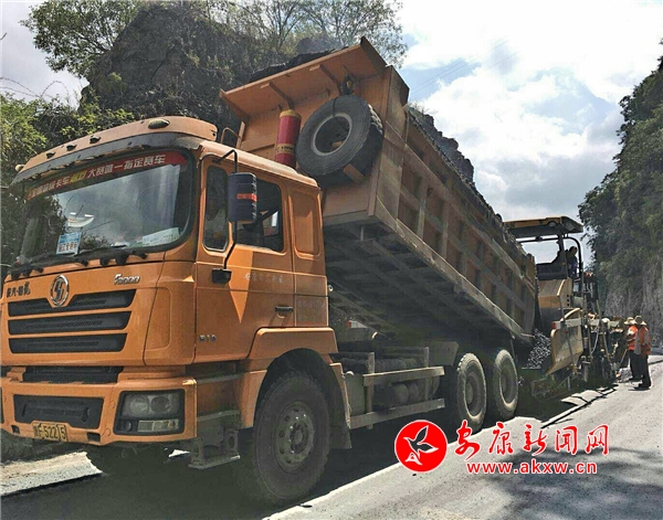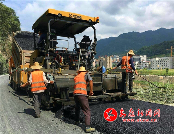 8月2日,筆者來到S308線2018年大中修工程LM—2標(biāo)段施工現(xiàn)場。剛打開車門,一股熱浪撲面而來。不遠(yuǎn)處,引擎轟鳴。運(yùn)裝瀝青料的車輛來回奔忙,七八名頭戴標(biāo)志帽,腳穿膠底鞋,揮舞著鐵鍬的工人,正在熱浪滾滾的作業(yè)面旁穿梭忙碌;旌狭喜粩鄰臄備仚C(jī)上卸下,碰到一些邊邊角角或者機(jī)械攤鋪不密實(shí)的地方,他們及時(shí)用鐵鍬不停補(bǔ)料、找平,清理整形。
