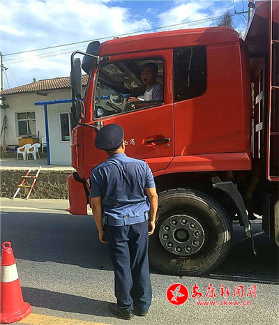 烈日下,一輛車牌號為陜G22**5的四軸重型貨運(yùn)卡車,在執(zhí)法人員尹明杰有條不紊的引導(dǎo)下,緩緩駛向便攜稱重設(shè)備。身著反光背心的尹明杰,面龐曬得發(fā)紅,汗水順著他的臉頰往下滾。“超重1.68噸……”活動(dòng)板房窗口,治超二班班長劉浩瀚手持檢測設(shè)備探出頭來喊道,并開具超載情況告知單請駕駛員簽字確認(rèn)。