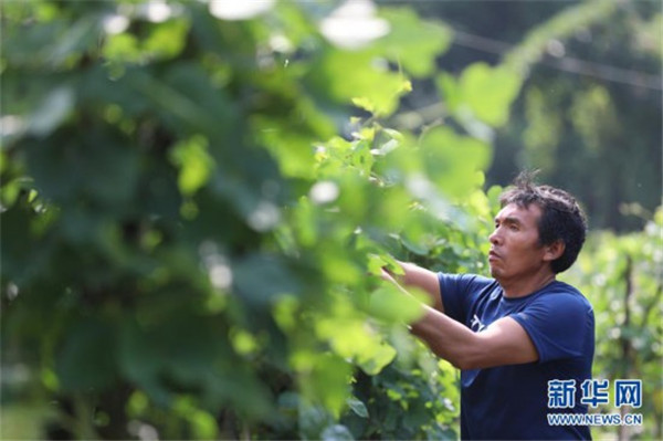一名村民在饒峰鎮(zhèn)三岔河村的葛根種植園區(qū)內(nèi)勞作(9月6日攝)。