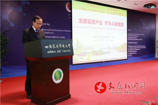 魯琦代表安康市政府向出席會(huì)議的領(lǐng)導(dǎo)、專家、嘉賓表示歡迎,對(duì)長(zhǎng)期支持安康發(fā)展的各界人士、朋友表示衷心感謝。在簡(jiǎn)要介紹我市打造“中國(guó)硒谷”的發(fā)展路徑及愿景后,魯琦指出,安康是全國(guó)最大天然富硒區(qū),富硒資源得天獨(dú)厚,富硒土壤生長(zhǎng)出來(lái)的天然富硒農(nóng)產(chǎn)品是人類天然補(bǔ)硒、健康養(yǎng)生的最佳選擇,著全市之力發(fā)展的富硒產(chǎn)業(yè)已成為我市最具特色、最具競(jìng)爭(zhēng)力、最具發(fā)展?jié)摿Φ氖孜划a(chǎn)業(yè)、招牌產(chǎn)業(yè)。他表示,這次會(huì)議為安康富硒特色產(chǎn)業(yè)“走出去”開展國(guó)際合作搭建了更高層次的產(chǎn)業(yè)交流及發(fā)展平臺(tái),我市將繼續(xù)堅(jiān)定“三產(chǎn)為龍頭、二產(chǎn)做支撐、一產(chǎn)打基礎(chǔ)”發(fā)展戰(zhàn)略,以富硒大健康產(chǎn)業(yè)為定位,保持定力,久久為功,著力建設(shè)全國(guó)著名硒療養(yǎng)生基地、全國(guó)最大富硒產(chǎn)業(yè)聚集區(qū)和富硒產(chǎn)業(yè)標(biāo)準(zhǔn)化示范區(qū),聚力打造“世界硒源地、國(guó)際健康城”,持續(xù)為全世界人民健康做出安康貢獻(xiàn)。會(huì)上魯琦向與會(huì)專家和社會(huì)各界發(fā)出邀請(qǐng),誠(chéng)邀世界友人和各方賓朋來(lái)安康傾聽安康故事,共享富硒資源,共筑人類健康。