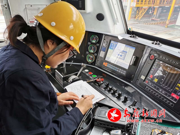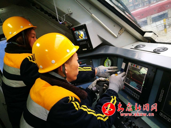 (圖為安康電務(wù)段車(chē)載車(chē)間職工在機(jī)頭作業(yè))