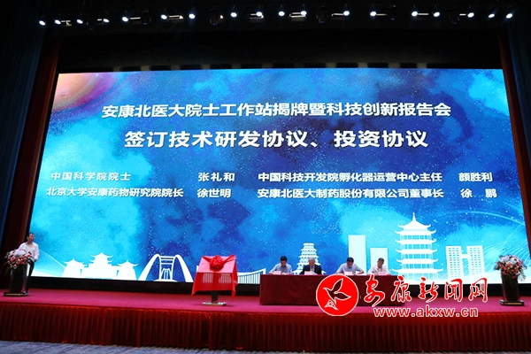 會(huì)上還簽訂了院士技術(shù)研發(fā)合作協(xié)議和投資合作協(xié)議。在隨后的科技創(chuàng)新報(bào)告會(huì)上,北京大學(xué)藥學(xué)院教授劉俊義、北京大學(xué)安康藥物研究院教授徐世明和中國(guó)科技開(kāi)發(fā)院孵化器運(yùn)營(yíng)中心主任顏勝利分別作了學(xué)術(shù)報(bào)告。市直有關(guān)部門負(fù)責(zé)同志、安康北醫(yī)大合作企業(yè)代表以及安康學(xué)院師生代表等300余人現(xiàn)場(chǎng)聆聽(tīng)學(xué)習(xí)。
