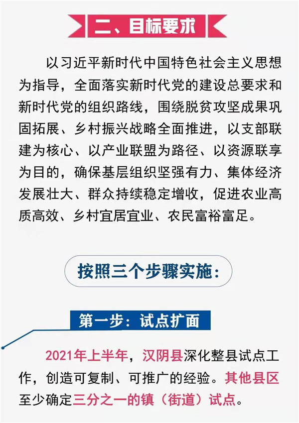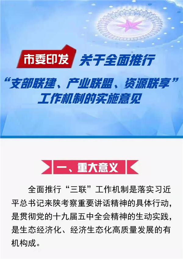 為深入貫徹落實(shí)習(xí)近平總書記來陜考察重要講話精神,實(shí)現(xiàn)鞏固拓展脫貧攻堅成果與鄉(xiāng)村振興有效銜接,以高質(zhì)量基層黨建保障高質(zhì)量發(fā)展,按照市委四屆十次全會要求,在總結(jié)漢陰等縣區(qū)試點(diǎn)經(jīng)驗的基礎(chǔ)上,現(xiàn)就全面推行“支部聯(lián)建、產(chǎn)業(yè)聯(lián)盟、資源聯(lián)享”(以下簡稱“三聯(lián)”)工作機(jī)制,提出如下實(shí)施意見。