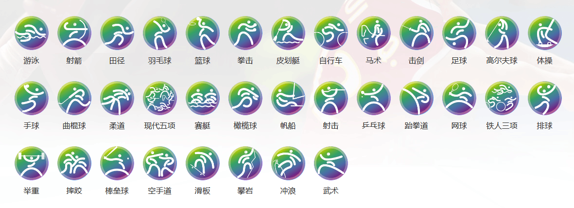 2021第十四屆全國(guó)運(yùn)動(dòng)會(huì)項(xiàng)目設(shè)置(包括34個(gè)大項(xiàng),387個(gè)小項(xiàng))。34大項(xiàng)包括游泳、射箭、田徑、羽毛球、籃球、拳擊、皮劃艇、自行車(chē)、馬術(shù)、擊劍、足球、高爾夫球、體操、手球、曲棍球、柔道、現(xiàn)代五項(xiàng)、賽艇、橄欖球、帆船、射擊、乒乓球、跆拳道、網(wǎng)球、鐵人三項(xiàng)、排球、舉重、摔跤、棒壘球、空手道、滑板、攀巖、沖浪、武術(shù)。
