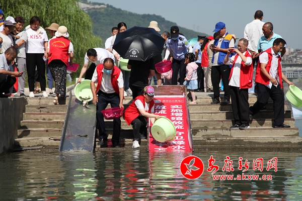 本網(wǎng)訊(記者 唐波)6月6日是農業(yè)農村部確定的“全國放魚日”,當日上午,省農業(yè)農村廳在旬陽縣海事碼頭舉行2021年“全國放魚日”陜西省魚類增殖放流活動啟動儀式。省農業(yè)農村廳二級巡視員鄭蕓瑄宣布活動啟動,市政協(xié)副主席、旬陽縣委書記梁濤致辭。