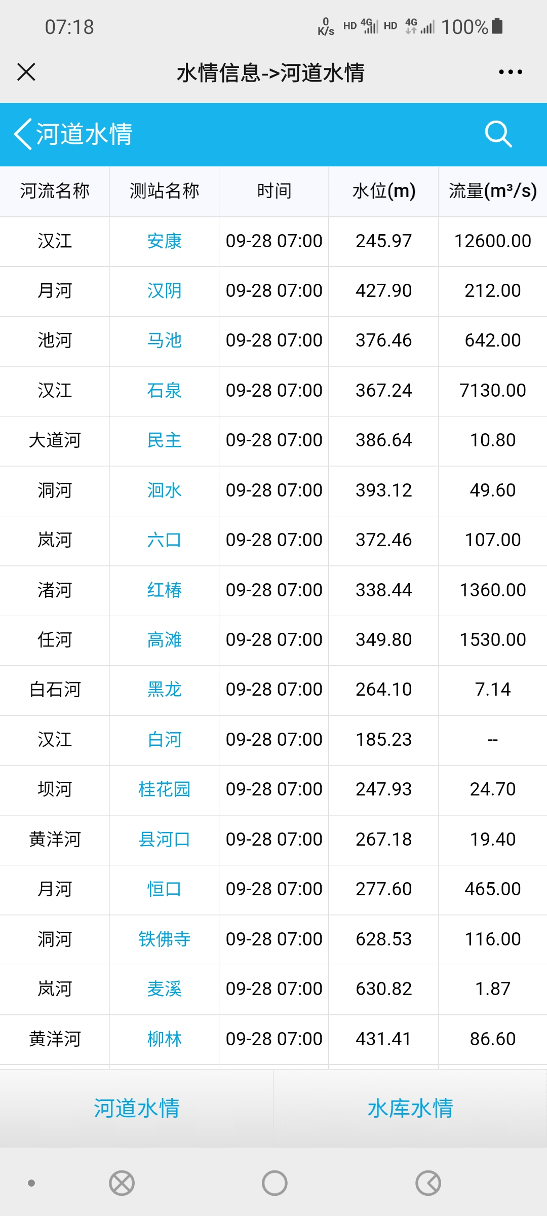 截至9月28日7時(shí),漢江水位(安康測站)245.97m,流量12600.00m³/s。