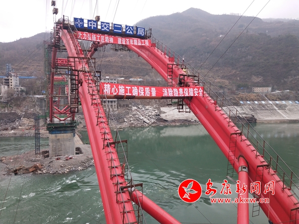 記者了解到,蜀河漢江大橋由于橋梁位置受地形所限,經(jīng)多次論證,最終確定改造方案為:拆除重建全橋上部結(jié)構(gòu)和部分下部結(jié)構(gòu),對部分下部結(jié)構(gòu)予以加固利用,新建主橋上部結(jié)構(gòu)采用2×120m中承式鋼管混凝土雙連拱橋,橋梁寬度15m,項目總投資8173萬。自2020年4月底開工建設(shè)以來,各參建單位克服舊橋拆除技術(shù)復(fù)雜、安全風(fēng)險高、創(chuàng)新工藝多以及新建橋梁異形結(jié)構(gòu)多、施工繁瑣和洪水影響等困難,通過科學(xué)組織、精心施工,目前主拱圈軸線、高程等技術(shù)指標(biāo)滿足要求,具備合龍條件。下一步將繼續(xù)高標(biāo)準(zhǔn)、快節(jié)奏實施管壓混凝土澆筑、吊桿及橋面結(jié)構(gòu)安裝等關(guān)鍵工序,全力沖刺“七一”前建成通車目標(biāo)。