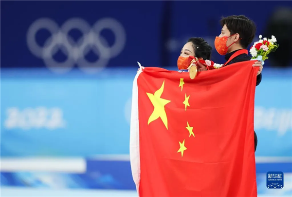 ▲2月19日晚,中國花樣滑冰選手隋文靜、韓聰獲得北京冬奧會(huì)雙人滑金牌。