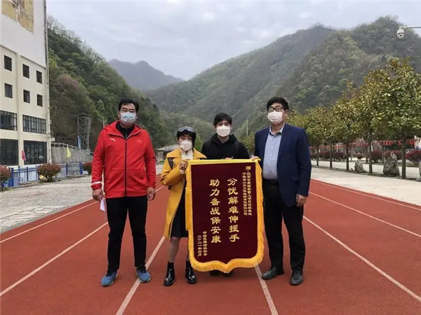 ▲去年4月,隋文靜和韓聰向安康寧陜縣的國家雪上項(xiàng)目訓(xùn)練基地負(fù)責(zé)人林晉炎送上錦旗。