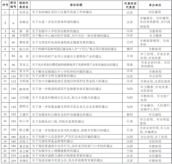 市四屆人大七次會議優(yōu)秀代表建議一覽表