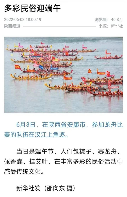 咱們安康龍舟節(jié),不光受到在外安康人熱捧,全國(guó)各地網(wǎng)友更是紛紛為本屆龍舟節(jié)打call。此外,新華通訊社、中央廣播電臺(tái)等駐外記者站及美聯(lián)社更是相繼轉(zhuǎn)發(fā)安康漢江龍舟節(jié)新聞;facebook、Twitter、You Tube等網(wǎng)絡(luò)社交平臺(tái)也紛紛傳播安康聲音。