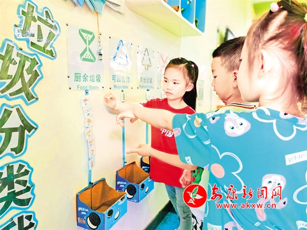 走進(jìn)漢濱區(qū)幼兒園,隨處可見以垃圾分類為主題的展板。該園老師鄭玉介紹:“全園15個(gè)班,每個(gè)班都設(shè)置有垃圾分類專題角,每學(xué)期不定期開展垃圾分類主題教育活動(dòng),每周一圍繞垃圾分類的意義、如何分類、處理辦法和注意事項(xiàng)等定期開展活動(dòng)。并利用走廊設(shè)置垃圾分類專題區(qū),制作垃圾分類戶外展板,通過微信公眾號(hào)和交流群,以“小手拉大手的形式”,帶動(dòng)家庭參與到垃圾分類行動(dòng)中來。”
