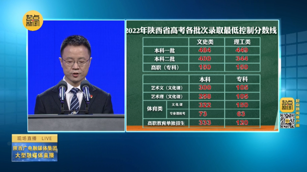 本網(wǎng)訊 6月24日,據(jù)2022年陜西省高考各批次錄取分?jǐn)?shù)線新聞發(fā)布會(huì)公布,陜西的理工類分?jǐn)?shù)線本科第一批為449分、第二批344分、?疲ǜ呗殻┡150分;文史類分?jǐn)?shù)線,本科一批484分、二批400分、?疲ǜ呗殻┡150分。