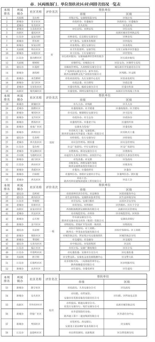 附件:市、區(qū)兩級部門、單位幫扶社區(qū)(村)周排名情況一覽表